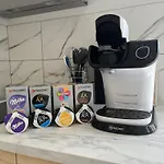 Köksfaciliteterna i Studio Mer Et Soleil Avec Terrasse, En Centre-Ville, Parking inkluderar vattenkokare, te-/kaffebryggare och köksredskap, som finns i matplats och utomhusmatplats. Gästerna kan njuta av en måltid på Coté Bistrot, som ligger cirka 5 minuters promenad bort. Gästerna kan enkelt nå La Rochelle flygplats, som ligger 65 km från den här villan med 1 badrum.